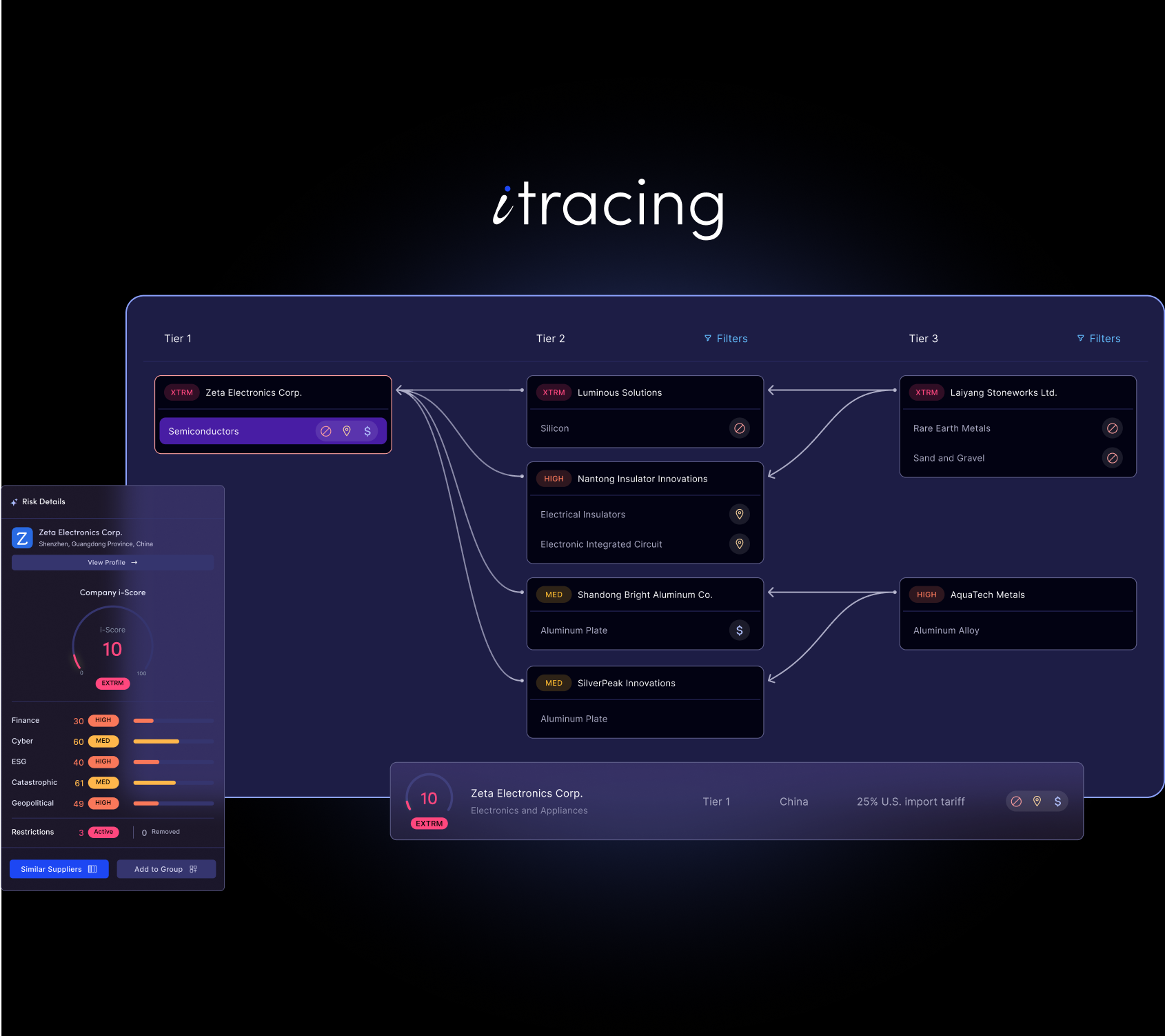 - Catch disruption before it cripples your production, revenue, and compliance - down to the product and supplier tier.